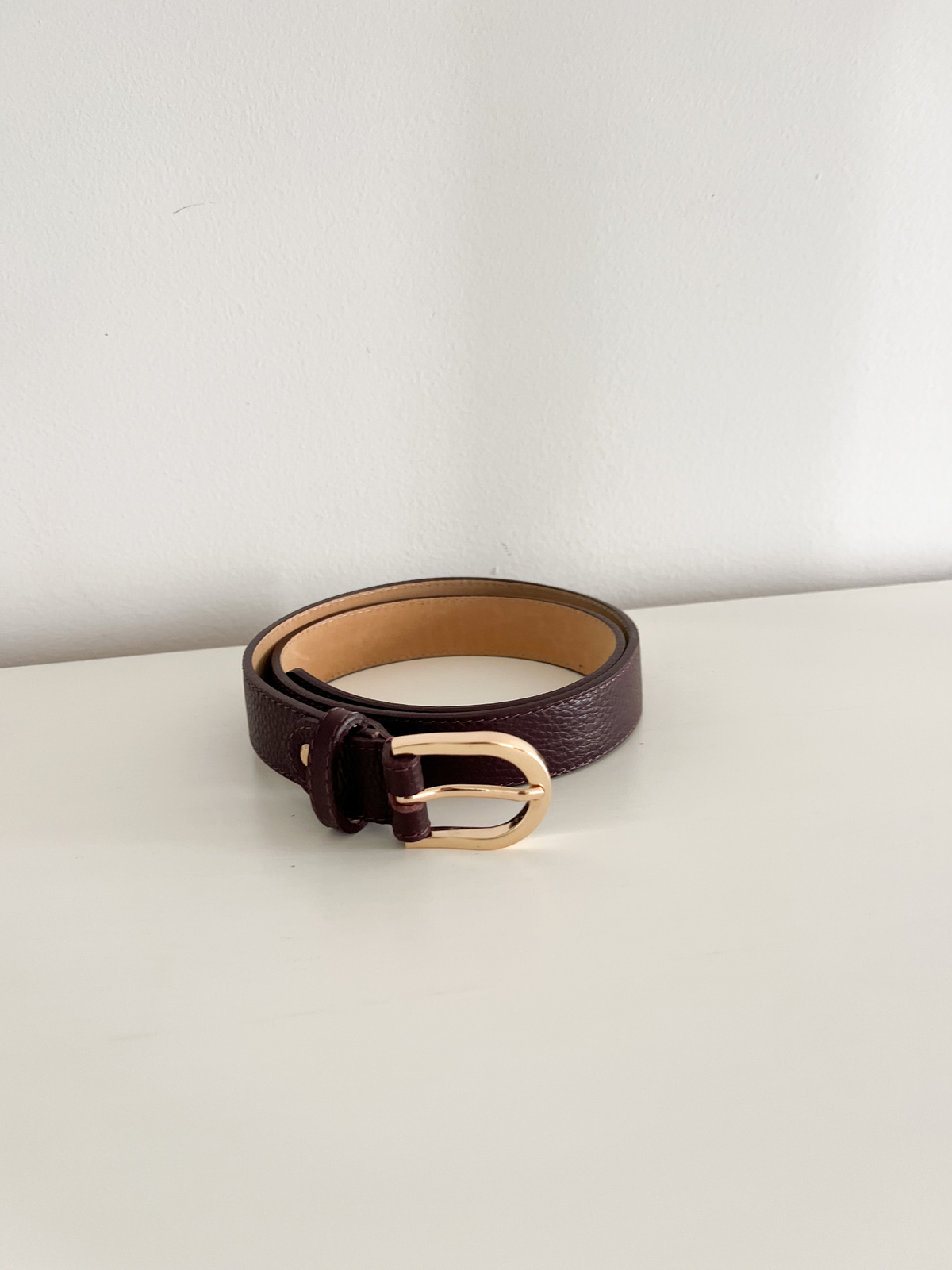 Klasyczny, skórzany pasek, ze złotą sprzączką. kolor: bordo  materiał: skóra naturalna Rozmiary: S 85 cm M 95 cm L 110 cm