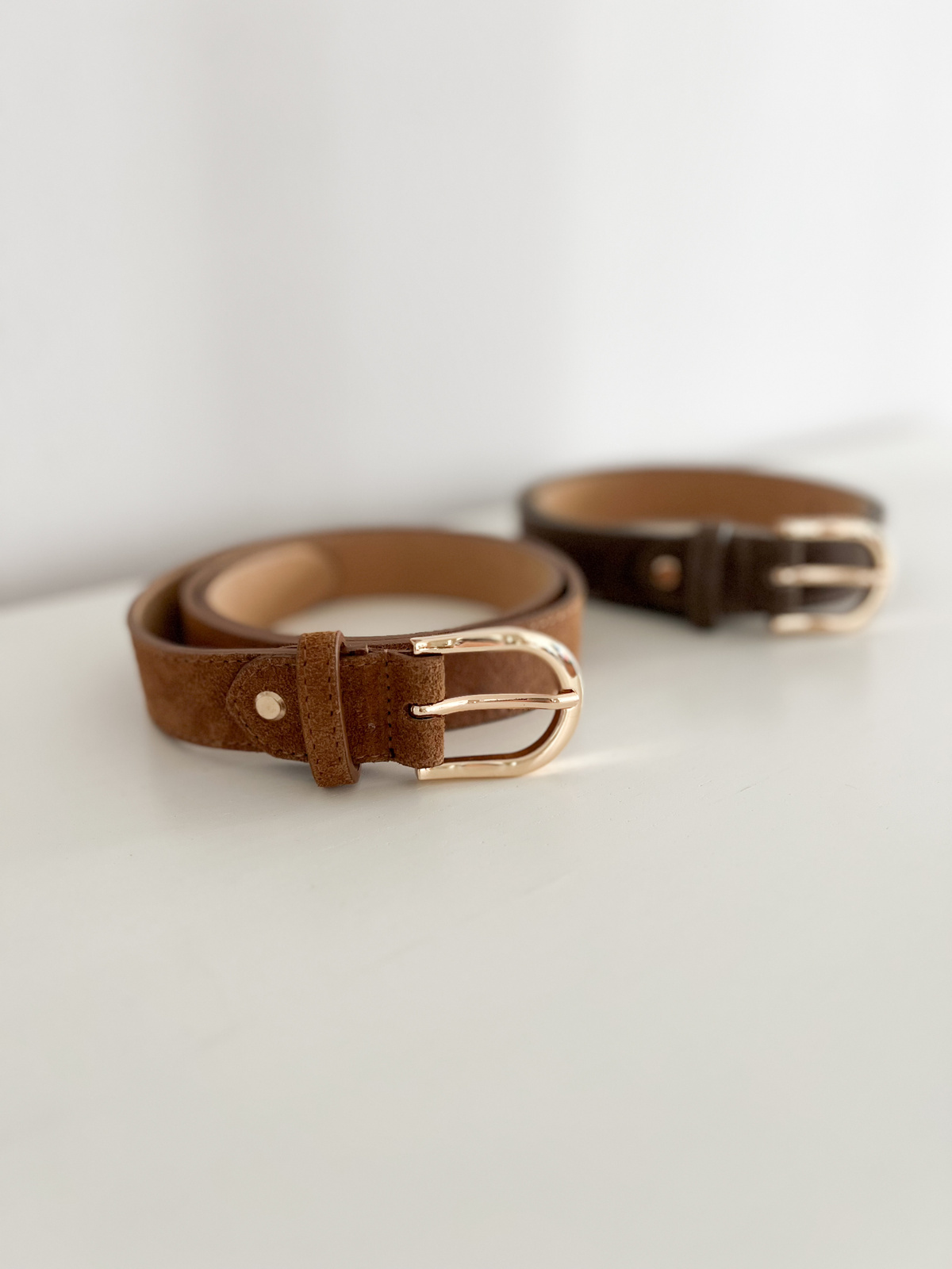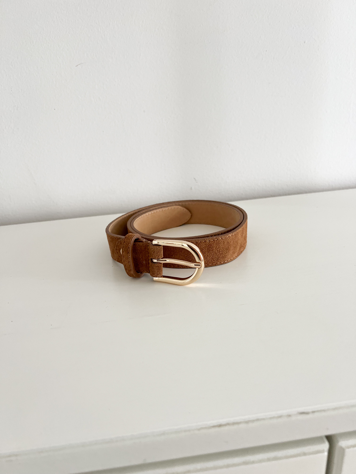 Klasyczny, skórzany pasek, ze złotą sprzączką. kolor: camel materiał: skóra naturalna Rozmiary: S 85 cm M 95 cm L 110
