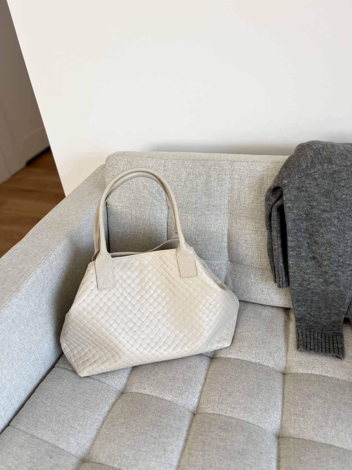 Stylowa shop perka uszyta z plecionej skory. Pojemna, wygodna, dzięki zapięciu można nosić ją na dwa sposoby. Idealna na co dzień. Wymiary: Mierzone na płasko: wysokość: 27cm, szerkość 51cm Wysokość uszu: 20