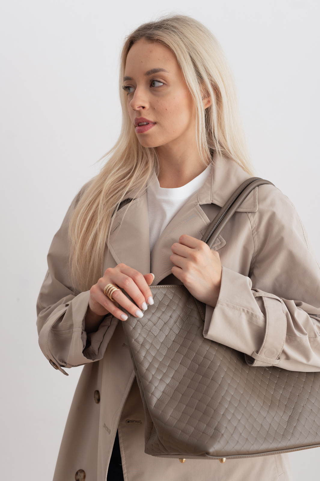 Stylowa shop perka uszyta z plecionej skory. Pojemna, wygodna, dzięki zapięciu można nosić ją na dwa sposoby. Idealna na co dzień. Wymiary: Mierzone na płasko: wysokość: 27cm, szerkość 51cm Wysokość uszu: 20