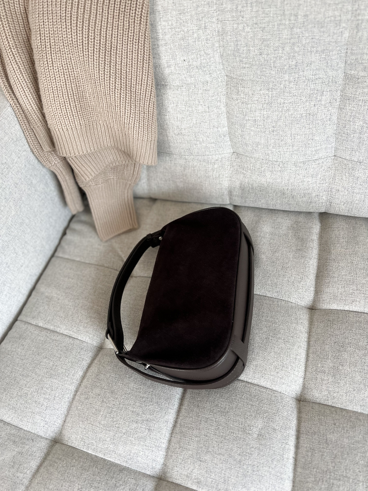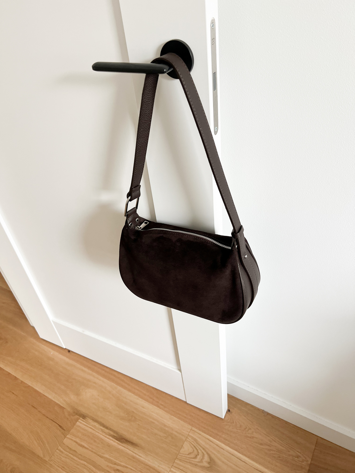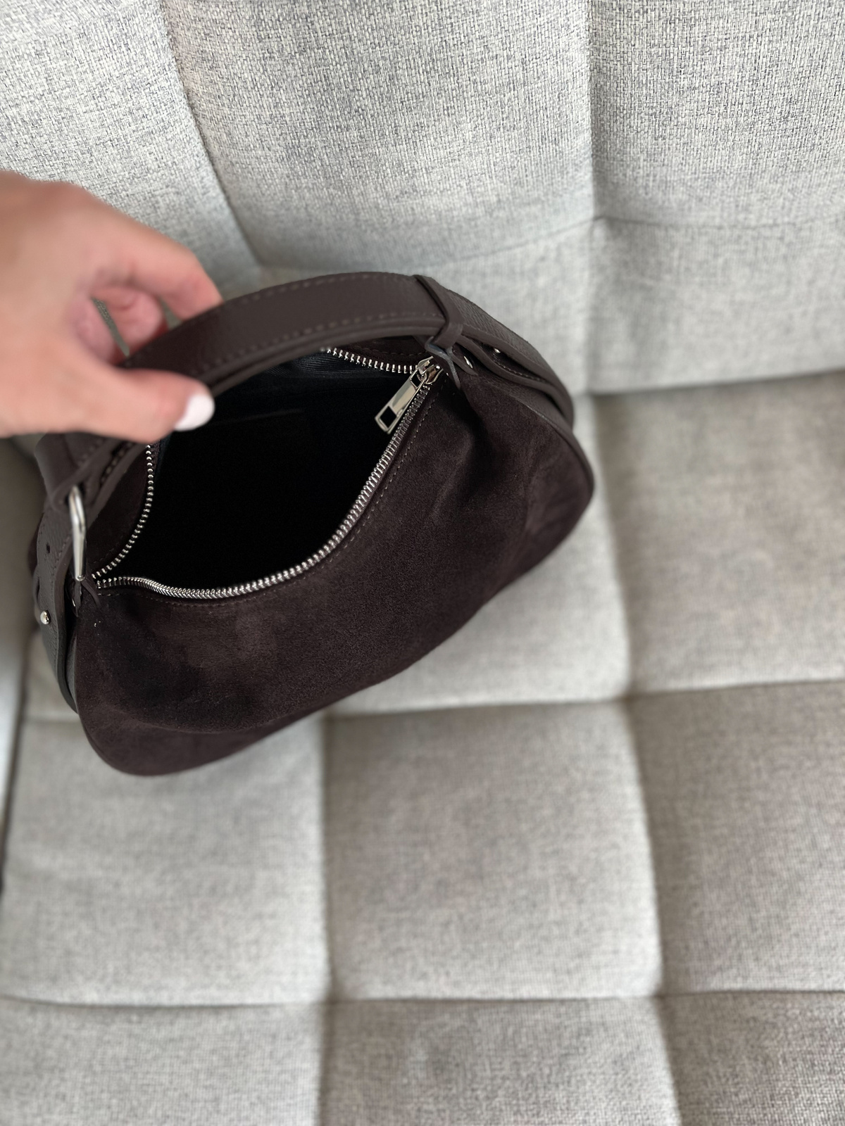 Stylowa torebka uszyta z dwóch rodzajów skór - zamszowej i licowej. Idealnie sprawdzi się na co dzień, ale również przy ważniejszej okazji. Dzięki regulowanemu paskowi można nosić ją w ręce oraz na ramieniu. Pojemna.