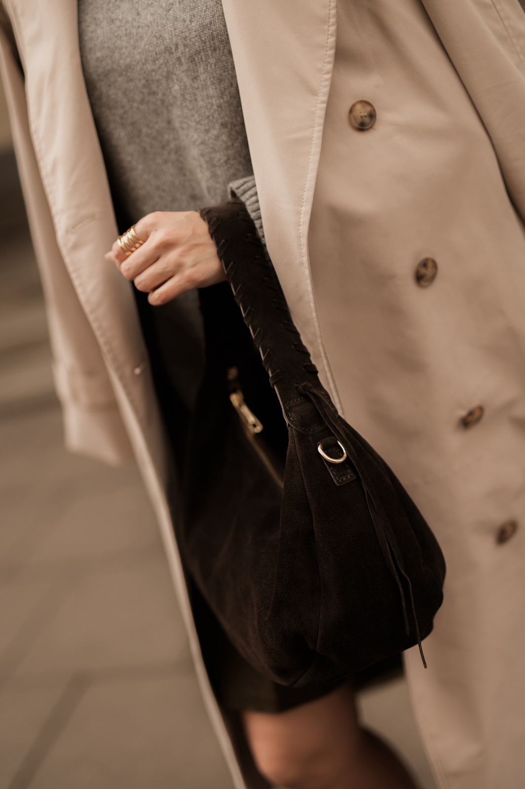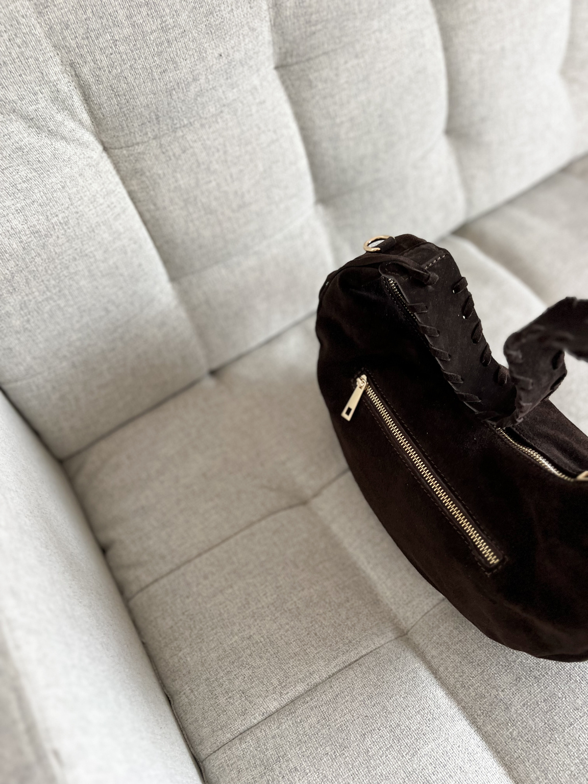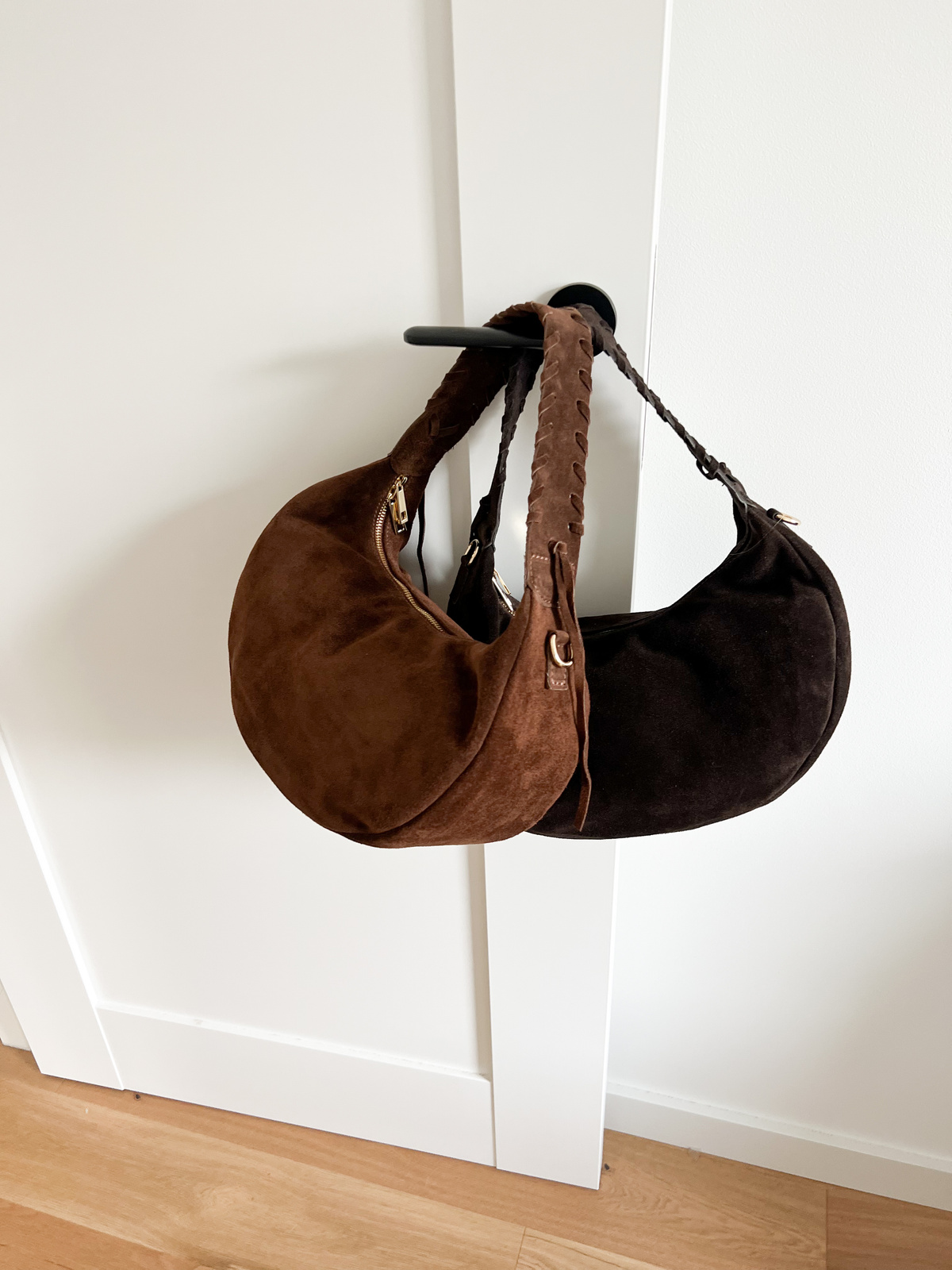 Stylowa torebka w stylu boho. Uszyta ze skóry zamszowej. Pleciony ozdobny pasek oraz frędzle nadają jej charakteru. Pojemna, idealna na co dzień. Dzięki dodatkowemu, odpinanemu paskowi, można nosić ją na kilka sposobów.