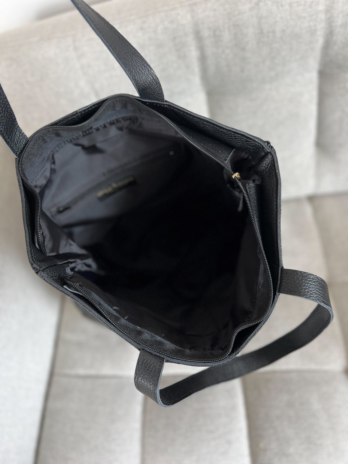 Klasyczna, prosta shopperka. Idealna na co dzień, pomieści wszystko, czego potrzebujemy (łącznie z laptopem). Dzięki dodatkowemu, odczepianemu paskowi, możemy nosić ją na różne sposoby.