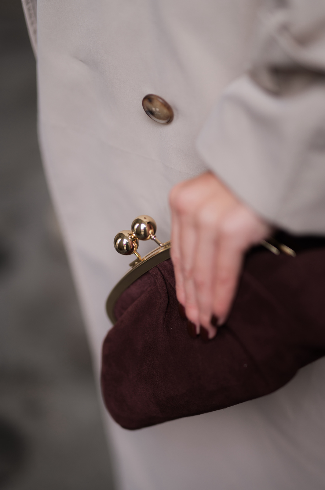 Przepiękna torebka w stylu vintage. Zapinana na bigiel, będzie doskonałą ozdobą do każdej stylizacji. Świetnie sprawdzi się jako kopertówka. Uszyta ze skory zamszowej.
