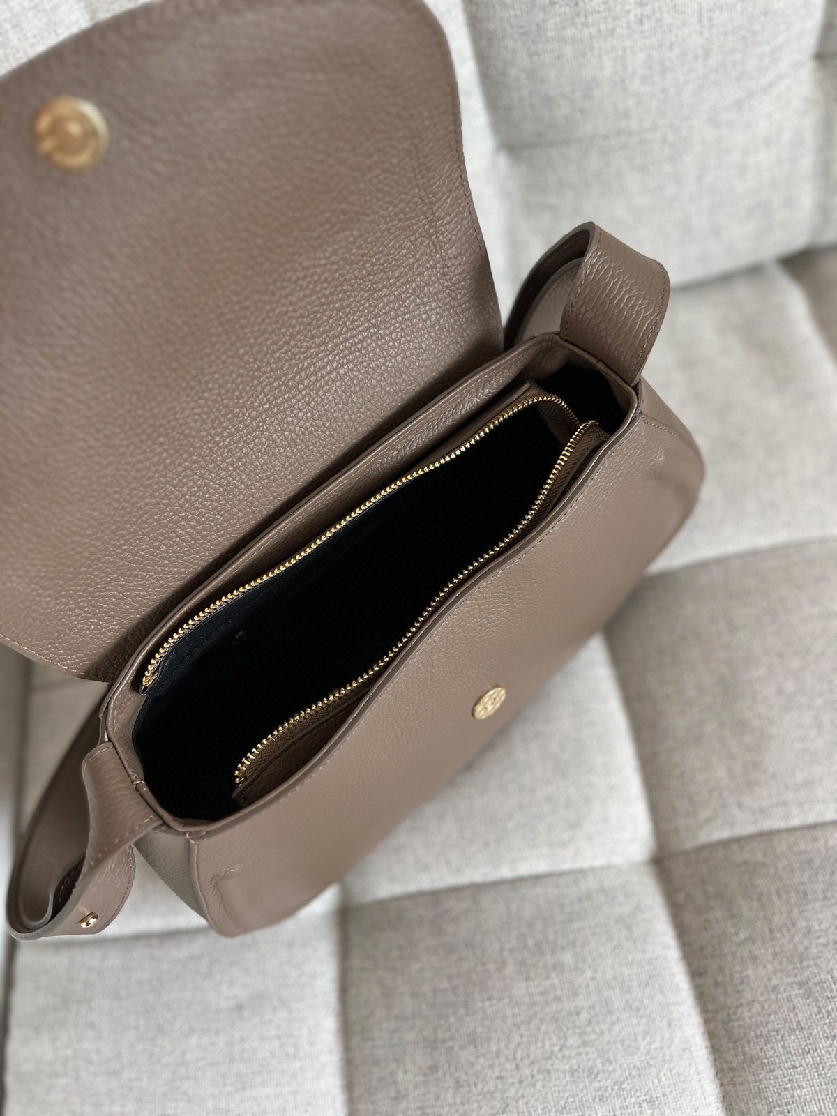 Torebka listonoszka. Świetnie sprawdzi się w codziennej stylizacji - jest pojemna. Prosty design sprawia, ze świetnie pasuje do wielu stylizacji. Posiada regulowany pasek, dzięki czemu możemy nosić ja tak, jak lubimy najbardziej. w środku jedna przegroda oraz dwie kieszonki, w tym jedna na suwak. Posiada podszewkę.